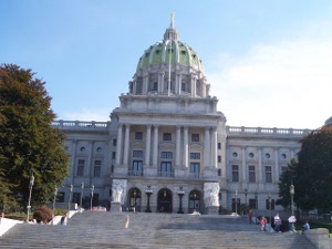 We made sure to get a view of the state capitol in Harrisburg, and then wandered in a generally eastward direction, discovering the Harrisburg slums. We recalled that Pennsylvania is one of those northeastern states whose factories have either closed or moved south. With an