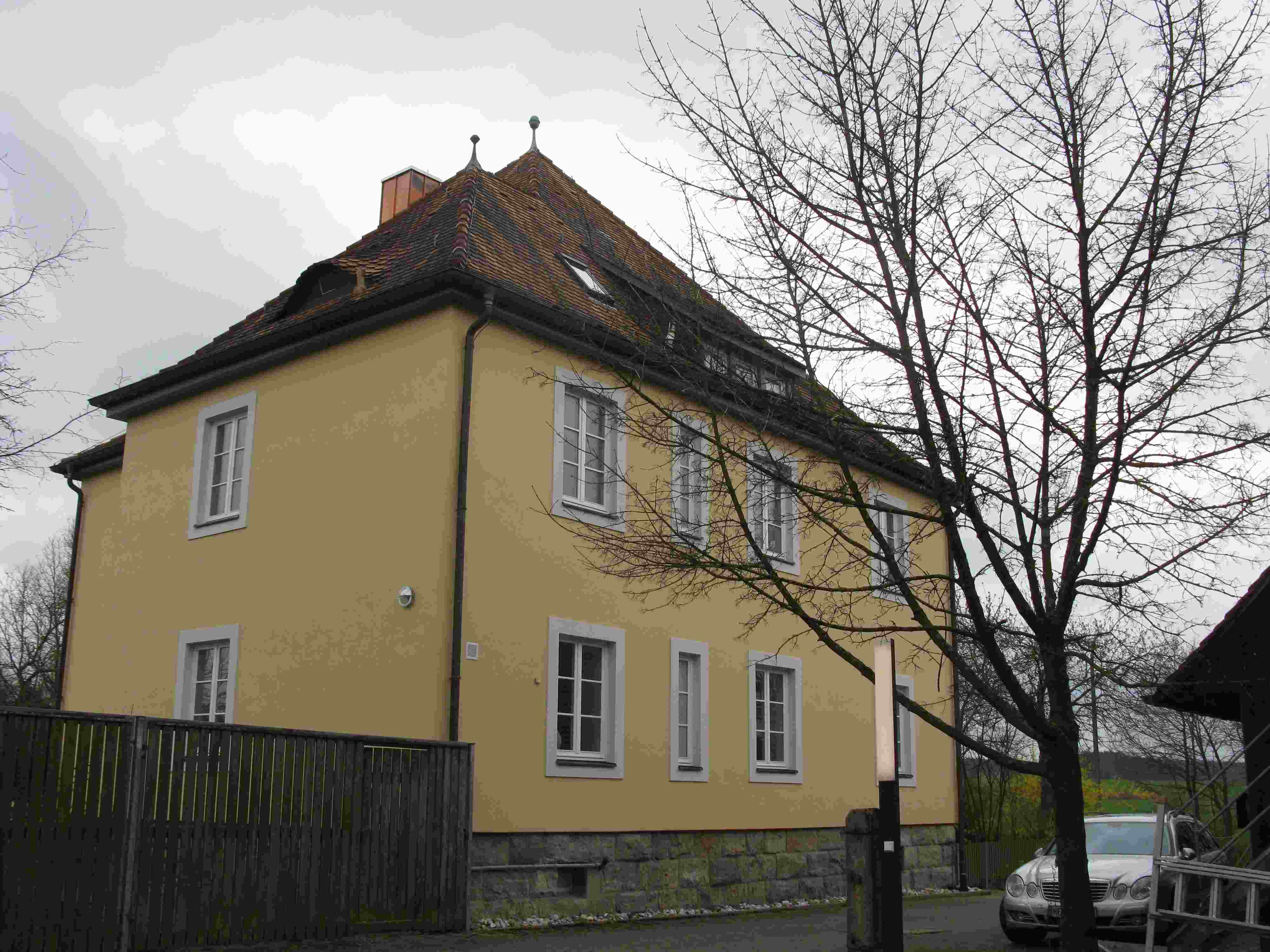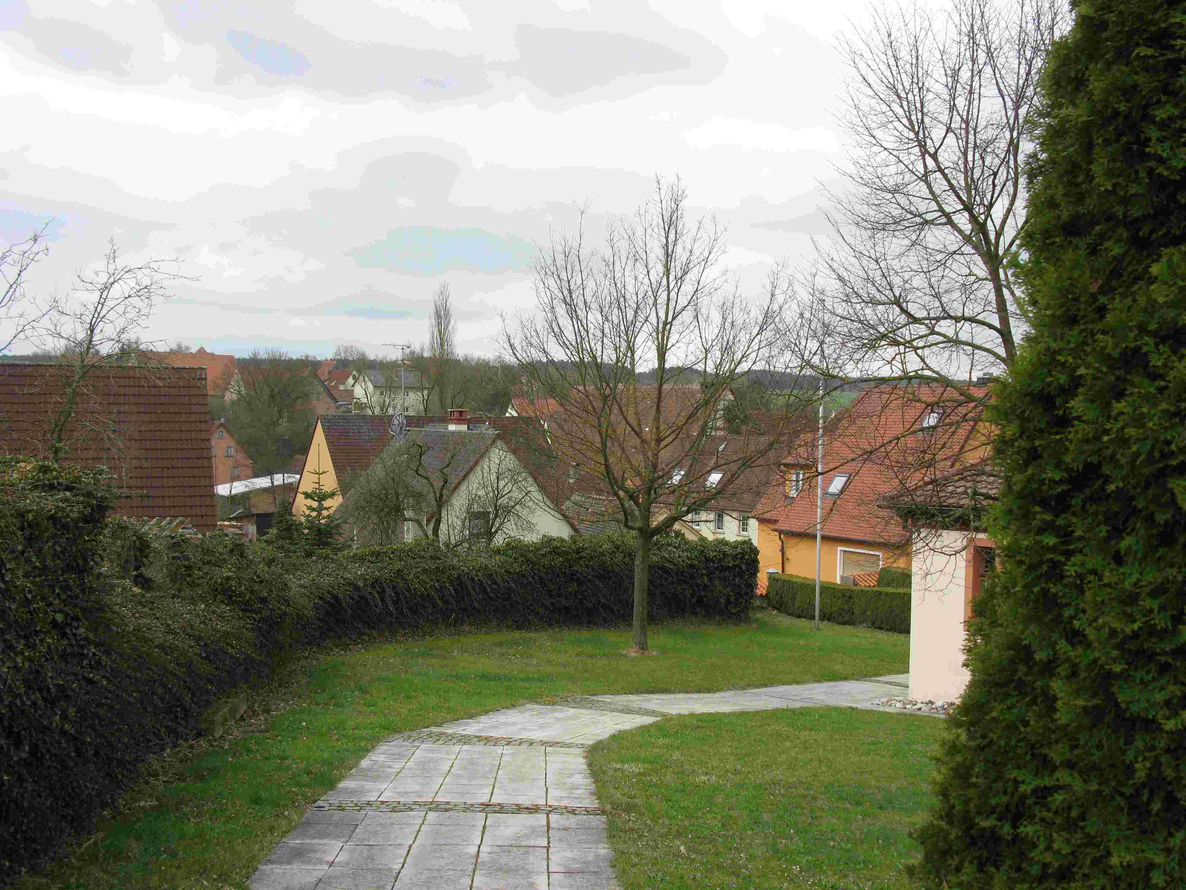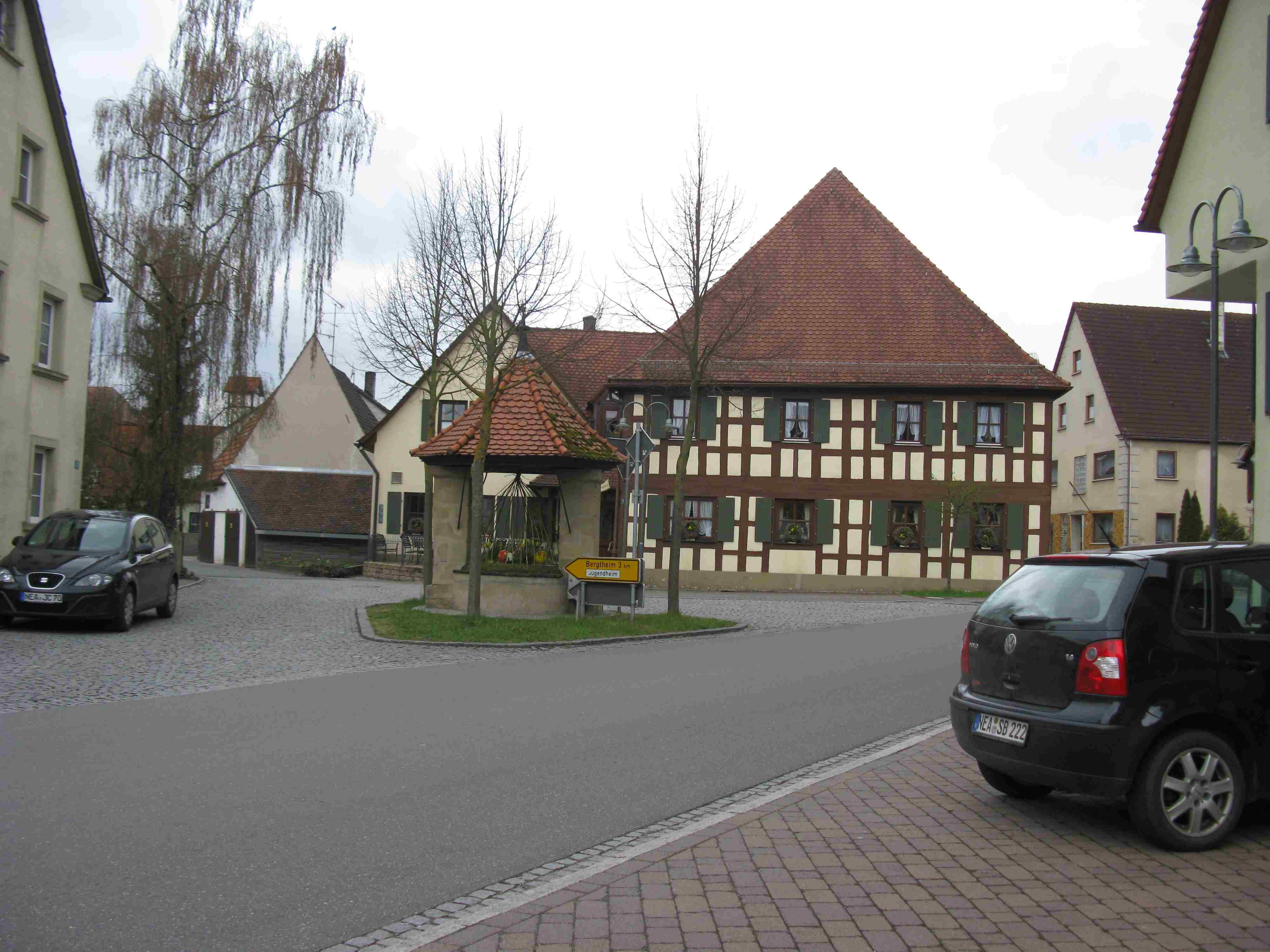 Schornweisach was about the same distance from our hotel as Uehlfeld, but in a slightly different direction. It too is a tiny quiet village, smaller than Uehlfeld, with solidly-built houses along just a few streets, and small farm lots reaching right up to the houses themselves.