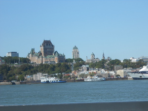 We stayed in Levis, across the river from Quebec City, for several days. The guidebooks recommend taking the Levis ferry for a view of the walled city, so we gave that a try, and agree. Added to the view is the pleasure of seeing the contrast between the Quebec waterfront and the surrounding hillsides.