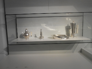 The last place we went was the jugendstil exhibit -- ceramics and furniture and silverware from all over Europe and even some Tiffany pieces. We were quite impressed -- we love jugendstil, and took several photos but were also getting tired, so we skipped the exhibit of Japanese art (although we did spot a big samurai outfit) and found our way across the plaza to the trolley stop where we grabbed the trolley to the train station and then the train back to Frankfurt. In Frankfurt we had an ice cream and then we walked back to our hotel room where we scared up some towels and hoped that tomorrow the housekeeping will come earlier.